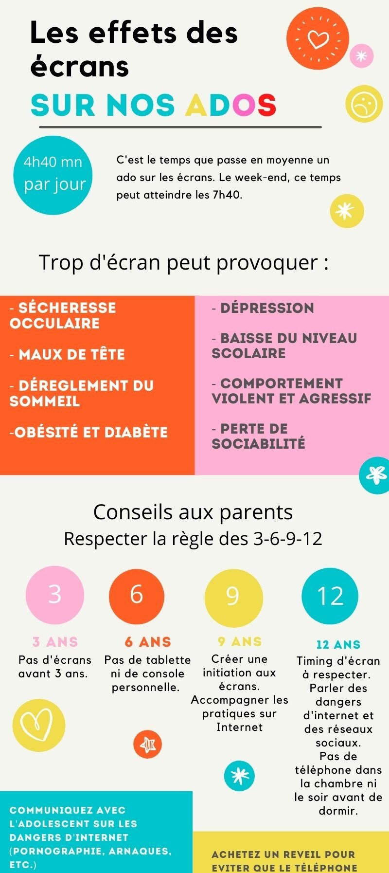 Vous trouverez également en pièce jointe l'intégralité de l'infographie des conseils pour mieux gérer les écrans avec les enfants ainsi que les postures à privilégier lorsqu'on travaille ou qu'on consulte les écrans. Ces documents nous sont proposés par Mme Chirouze, infirmière de l'établissement.