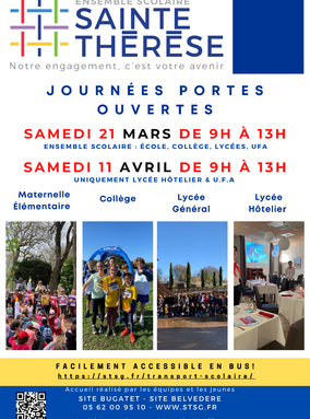 - le samedi 21 mars 2026 de 9h00 à 13h00 pour l'école maternelle et primaire, le collège, le lycée général et le lycée hôtelier
